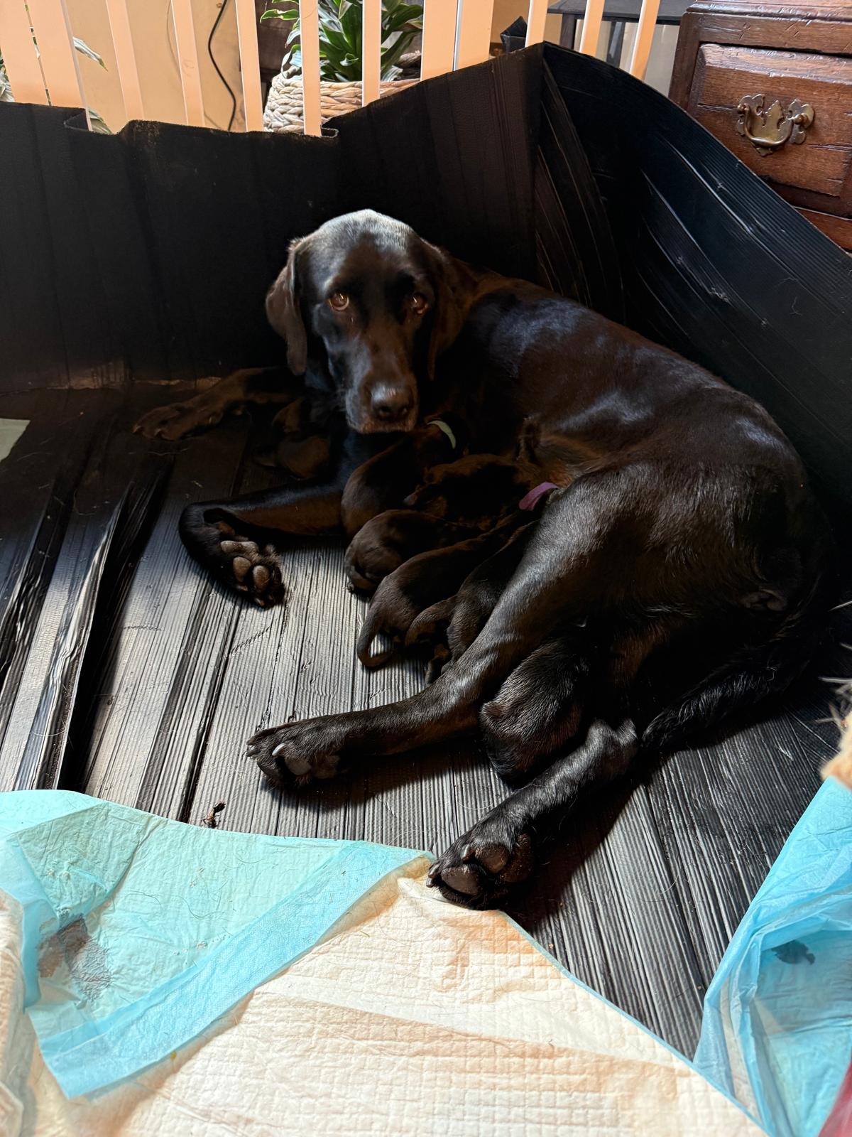 Dora has provided us with a fantastic healthy litter of five bitches and five dogs. All black. Dora's first litter has provided puppies with excellent health and scores as perfect as 0 - 0 hips.