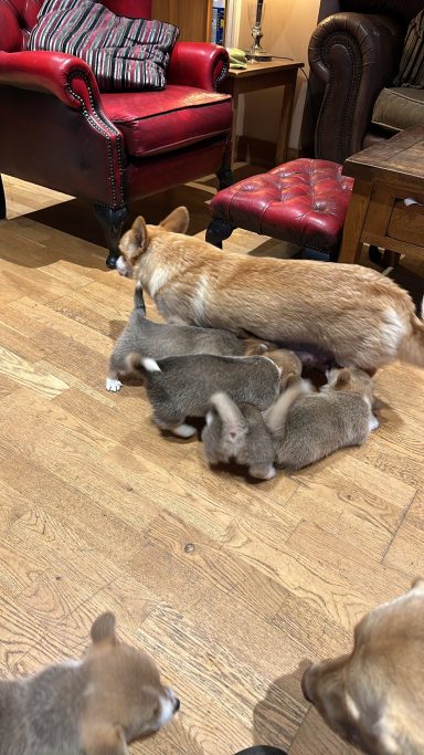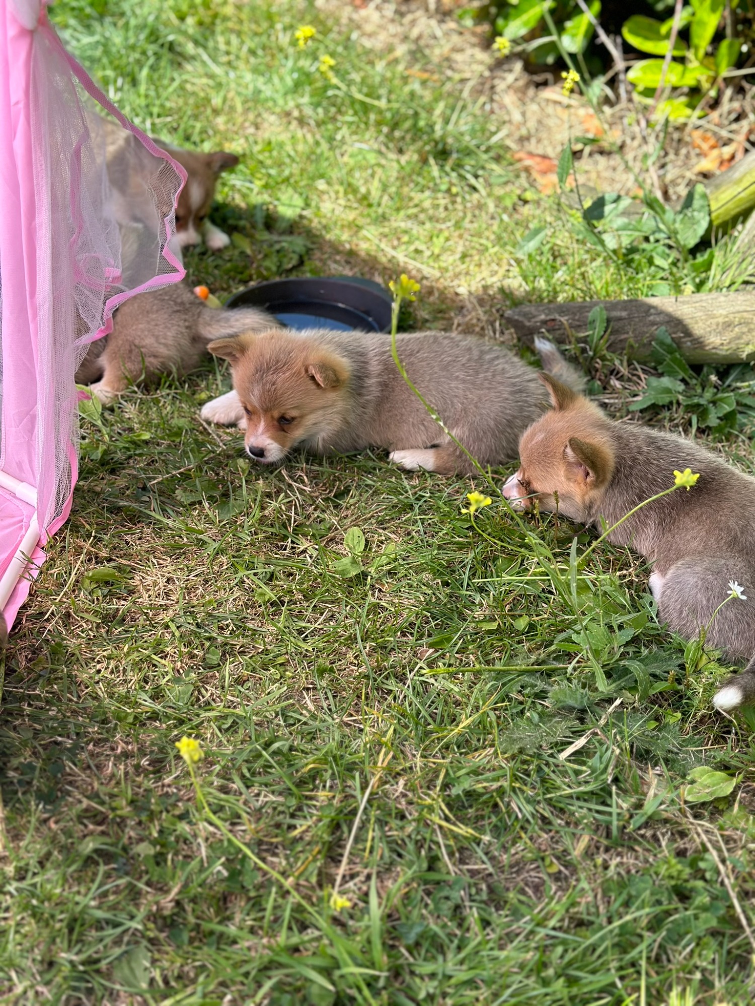 This litter was born in June 0f 2024. Every litter we have gets the same special treatment that sets them up for their life adveture. Socilisating with cats, other dogs, children, hens, ducks, horses and lots ao loud noises and normal houshold sounds.